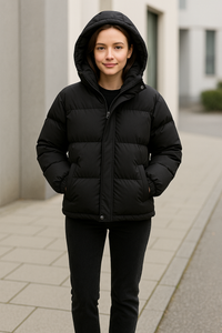 Blijf beschermd tegen de kou met deze dikke, met katoen gewatteerde winterjas. Ontworpen met een knusse capuchon en duurzame buitenkant, sluit het warmte in terwijl het blijft ademen om de hele dag te dragen. De losse pasvorm maakt het gemakkelijk om over truien of hoodies te dragen, zodat je in elke omgeving comfortabel blijft. Dit pufferjack is gemaakt voor vrouwen en combineert functionaliteit met een alledaagse casual stijl. Combineer hem met joggers en sneakers voor een relaxte winterlook.