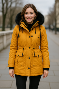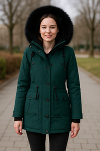 • De hele dag warm: Dikke vulling en bontrand beschermen je tegen koude temperaturen.