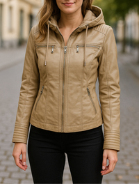 Ga vol zelfvertrouwen op pad met deze damesjas met capuchon, ontworpen om je stijlvol en comfortabel te houden tijdens koelere dagen. De buitenkant van PU-leer zorgt voor een strakke look, terwijl de vastzittende capuchon een sportieve twist en extra warmte toevoegt. Perfect om in laagjes te dragen, het past zowel bij casual uitjes als bij avondkleding. Deze jas is lichtgewicht maar toch duurzaam en een veelzijdig basisstuk voor de herfst en winter. Combineer hem met een skinny jeans en enkellaarsjes voor een moeiteloos chique outfit.Damesjas Van PU-Leer Met Capuchon, Casual Zwarte Bbovenkleding Voor Herfst En Winter | VIQA VIQA© NEDERLAND