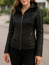 Damesjas Van PU-Leer Met Capuchon, Casual Zwarte Bbovenkleding Voor Herfst En Winter | VIQA VIQA© NEDERLAND