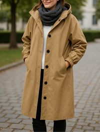 Stap vol vertrouwen naar buiten in deze stijlvolle lange trenchcoat die is ontworpen voor moderne vrouwen. De lichtgewicht maar beschermende stof beschermt je tegen wind en lichte regen en houdt je de hele dag comfortabel. De losse pasvorm en het ontwerp met capuchon zijn zowel elegant als praktisch, zodat je hem gemakkelijk over elke outfit kunt dragen. Hij is perfect voor op het werk, op reis of voor casual uitjes en combineert tijdloze stijl met alledaags comfort. Combineer hem met een smalle broek en enkellaarsjes voor een gepolijste look.Lange Trenchcoat Voor Dames, Effen Gekleurde Windjack Met Capuchon, Elegante Losse Regenjas VIQA VIQA© NEDERLAND
