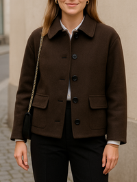 Stap met vertrouwen en comfort de koudere seizoenen in. Deze korte wollen jas biedt betrouwbare warmte met een strak, modern silhouet. Hij is ontworpen met een knoopsluiting aan de voorkant en zorgt voor een tijdloze look die zowel geschikt is voor casual uitjes als nette gelegenheden. De zachte wolmix zorgt voor isolatie zonder bulk, waardoor het een veelzijdige nietje is in je garderobe. Combineer hem met een getailleerde broek of skinny jeans voor een gepolijste winteroutfit.