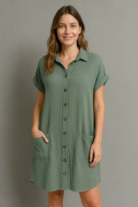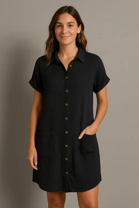 Stap in tijdloos comfort met deze midi-hemdjurk van katoen-linnen, ontworpen voor ontspannen zomerdagen en stijlvolle uitjes. De jurk heeft een flatterende v-hals en driekwart mouwen en biedt een lichte, ademende pasvorm die je koel houdt. De zachte natuurlijke stof beweegt gemakkelijk en is prachtig te combineren met casual of geklede accessoires. Of je nu over de markt loopt of met vrienden gaat brunchen, dit kledingstuk biedt ontspannen charme met minimale inspanning. Draag hem één keer en je zult hem het hele seizoen dragen. Combineer met sandalen, een zonnehoed en een crossbody tas voor de ultieme zomerklare outfit.Dames Overhemd Jurk Met Zakken VIQA© NEDERLAND