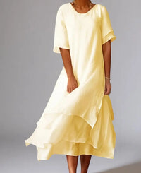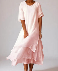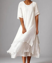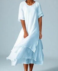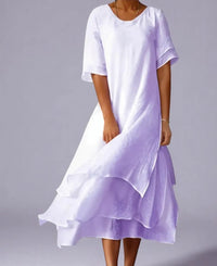 Deze lichte katoenen zomerjurk is ontworpen voor dames die waarde hechten aan comfort en heeft een dubbellaags ontwerp en elegante korte mouwen met split voor extra dimensie. De onregelmatige zoom voegt een stijlvol randje toe en biedt ademende vrijheid bij elke stap. Deze jurk met ronde hals is perfect voor in het weekend, op reis of voor informele bijeenkomsten en heeft een ontspannen pasvorm zonder in te boeten aan visuele aantrekkingskracht. Lichtgewicht en veelzijdig, naadloos over te dragen van dag naar avond. Combineer met sneakers of plateausandalen en een crossbody tas om de look af te maken.Isla Dames Elegante Ademend Katoenen Zomerjurk VIQA© NEDERLAND