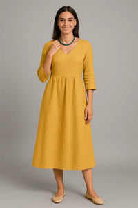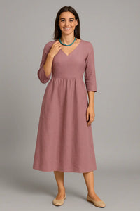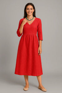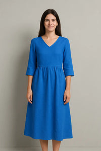 Deze veelzijdige vakantie midi jurk combineert elegantie met alledaags comfort, waardoor het een must is voor je seizoensgarderobe. De slanke maar losse pasvorm flatteert je vorm zonder beperkend aan te voelen en biedt bewegingsvrijheid voor drukke dagen. Ontworpen voor casual uitjes of op kantoor, de minimalistische stijl zorgt ervoor dat je er de hele dag gepolijst uitziet. Hij is licht maar toch knus en vormt een perfecte overgang van een koele ochtend naar een warmere namiddag. Maak de look compleet door hem te combineren met enkellaarsjes en een gestructureerde handtas voor een moderne, verhoogde outfit.