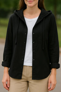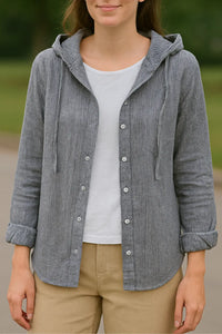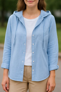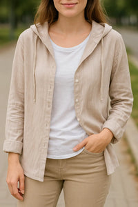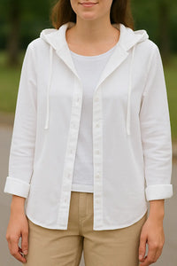 • Veelzijdig ontwerp: Een detail met capuchon gaat samen met een nette button-down stijl, waardoor je het strandgevoel combineert met draagbaarheid voor elke dag.
