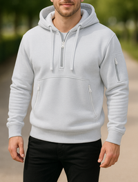 Deze slim fit trui met halve rits is ontworpen voor mannen die op zoek zijn naar een moeiteloze stijl met dagelijks comfort. De moderne V-hals en strakke snit maken het een veelzijdige keuze voor zowel casual weekenden als chique avonden. Ontworpen voor de herfst en winter, biedt het warmte zonder extra volume, waardoor je er altijd verzorgd uitziet. Het minimalistische effen ontwerp past gemakkelijk bij je garderobe. Draag hem met een tailored jeans of chino voor een complete, verfijnde outfit.Heren Winter Trui, Halve Rits V-Hals Sweater, Effen Kleur Slim Pasvorm Lange Mouwen Sweatshirt | VIQA VIQA© NEDERLAND
