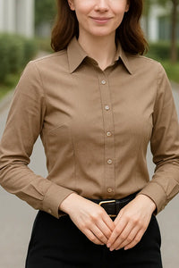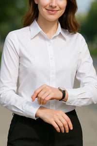 Stap zelfverzekerd de dag in met dit frisse, getailleerde overhemd met lange mouwen, ontworpen voor dames die het menen. Dit shirt is gemaakt voor een gepolijste pasvorm en combineert klassieke structuur met comfort, waardoor het de perfecte keuze is voor vergaderingen, interviews of dagelijkse werkkleding. De lichtgewicht stof zorgt voor ademend vermogen, terwijl de gestructureerde kraag en manchetten met knopen zorgen voor een professioneel accent. Ontworpen om alle lichaamstypes te flatteren, geeft het je ruimte om te bewegen terwijl het een scherp silhouet houdt. Combineer het met een getailleerde broek of een kokerrok met hoge taille om een krachtige kantoorlook te creëren.Dames Knoop-Hirt, Lange Mouw Formele Kantoor Blouse, Professionele Werkkleding Top | VIQA VIQA© NEDERLAND