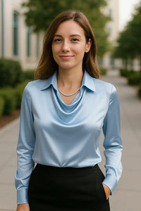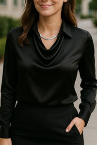 Stap in de dagelijkse verfijning met dit gladde satijnen overhemd met lange mouwen, ontworpen om comfort en klasse te brengen in je dagelijkse garderobe. Het ontspannen silhouet valt mooi op het lichaam, terwijl de reverskraag precies de juiste hoeveelheid structuur toevoegt. De lichte satijnen textuur zorgt voor een gestroomlijnde, verhoogde look die geschikt is voor zowel ochtendritten als informele diners. Perfect om in laagjes of solo te dragen, dit stuk brengt subtiel zelfvertrouwen zonder moeite. Combineer het met een getailleerde broek of jeans met hoge taille voor een nette, verfijnde outfit.Dames Satijn Lange Mouw Shirt, Los Fit Kapsel Kraag Blouse, Effen Kleur Elegante Dagelijkse Top | VIQA VIQA© NEDERLAND