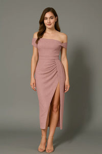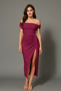Ga voor de nacht in deze elegante bodycon midi galajurk, ontworpen om je rondingen te accentueren met een slank off-shoulder silhouet. De gewaagde split aan de zijkant en de lange mouwen zorgen voor de perfecte balans tussen verfijning en allure. Deze effen jurk is ideaal voor avondfeestjes, speciale evenementen en avondjes uit en geeft je stijl moeiteloos zelfvertrouwen. De flatterende, gebeeldhouwde pasvorm zorgt ervoor dat je je net zo prachtig voelt als je eruitziet. Combineer hem met naaldhakken en een opvallende clutch voor een verbazingwekkend look.Charlene Dames Zomer Elegante Midi Galajurk VIQA© NEDERLAND