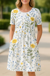 Dames Bloemen A-lijn Jurk, Zomer Ronde Hals Korte Mouwen Casuele Homewear | VIQA VIQA© NEDERLAND