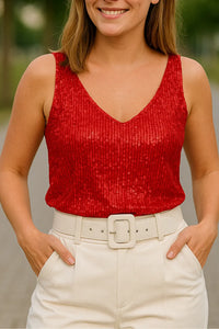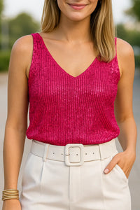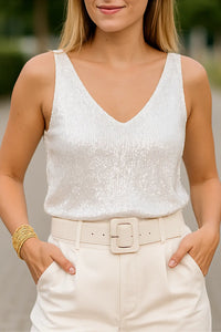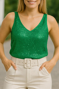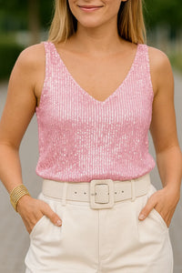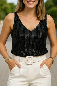 Dames Blouse Met Lovertjes, Mouwloos V-Hals Fonkelende Feesthemd, Sexy Top | VIQA