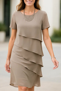 Dames Chiffon Midi Jurk, Elegant O-Hals Gelaagde Korte Mouwen Zomer Feestjurk | VIQA VIQA© NEDERLAND