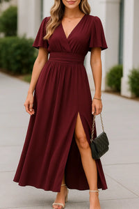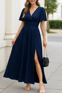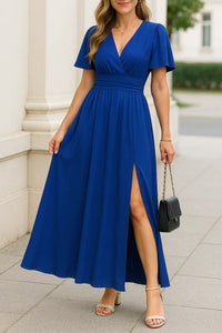 Dames Elegante V-hals Maxi Jurk, Zomer Korte Mouwen Hoge Taille Slank Fit Casual Dress | VIQA VIQA© NEDERLAND