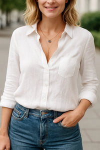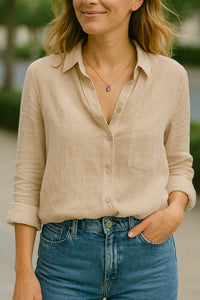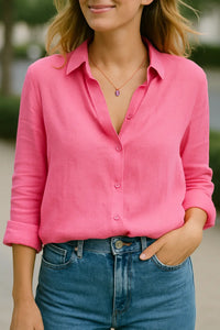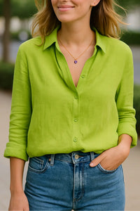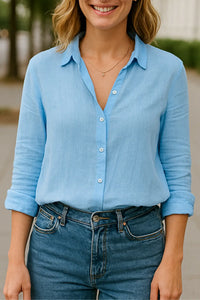 Dames Overhemd Van Katoen-Linnen Met Lange Mouwen, Casual Polo Losvallende Pasvorm | VIQA