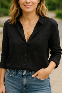 Deze ademende katoen-linnen blouse combineert een relaxte pasvorm met tijdloze details, waardoor het je favoriete top wordt voor een moeiteloze chique look. De lange mouwen en zachte stof zorgen voor een lichte bedekking zonder zwaar aan te voelen, ideaal om in alle seizoenen te dragen. Een subtiele polo-halslijn en artistieke print op de voorkant voegen een vleugje vintage elegantie toe die deze blouse onderscheidt. Of je nu naar je werk gaat of naar een casual brunch, dit kledingstuk biedt zowel stijl als gemak. Combineer het met een spijkerbroek of linnen broek voor een complete relaxte look.Dames overhemd van katoen-linnen met lange mouwen, polo met vintage print, casual losvallende pasvorm | VIQA VIQA© NEDERLAND