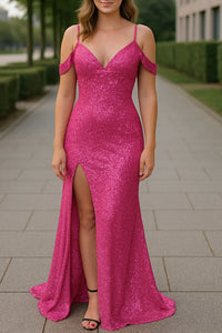 Maak een gedurfde entree met deze glinsterende show-stopper. Deze maxi-jurk met paillettenbretels voor dames is ontworpen om de aandacht te stelen op elk feest, formele gebeurtenis of bruiloft. Met een flatterende off-shoulder halslijn, fonkelende pailletten details en een gewaagde split aan de zijkant straalt deze jurk moeiteloze glamour uit. De nauwsluitende pasvorm benadrukt je rondingen, terwijl de vloeiende maxilengte elegantie toevoegt. Perfect voor wie de hele avond wil stralen en een blijvende indruk wil achterlaten. Combineer met zilveren hakken, een bijpassende clutch en statement oorbellen voor een complete avondlook.Dames Pailletten Maxi Jurk, Sexy V-Hals Off-Shouder Jurk Met Zijsplit, Feest En Bruiloft Outfit | VIQA VIQA© NEDERLAND
