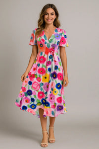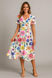 • Moeiteloze stijl: V-halslijn en zachte bloemenprint maken casual kleden leuker zonder moeite.