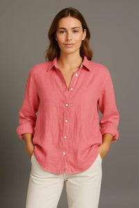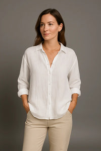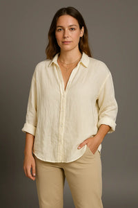 Deze stijlvol comfortabel linnen overhemd met knopen combineert lichtgewicht katoenen comfort met tijdloze structuur en is uw favoriete kledingstuk voor warme dagen. De ontspannen pasvorm en reverskraag geven het een slimme, veelzijdige look - makkelijk aan te kleden. De ademende stof houdt je koel, terwijl de snit een modern randje toevoegt. Het is ideaal voor zowel kantoorkleding als weekendplannen en biedt een verfijnde look zonder afbreuk te doen aan comfort. Combineer het met een broek met hoge taille of een denim short voor een gemakkelijke, evenwichtige outfit.Gabriella Blouse Met Knopen VIQA© NEDERLAND