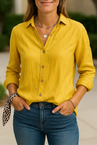 Katoenen Dames Blouse, Vrijetijdskleding Lange Mouwen Shirt, Effen Gekleurde Kraag Top | VIQA VIQA© NEDERLAND