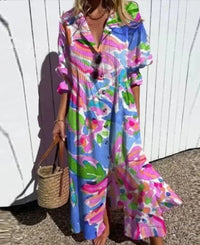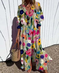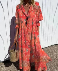 Lorna Dames Boho Overhemd Maxi Jurk Met Knoopsluiting VIQA© NEDERLAND