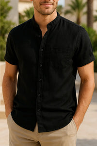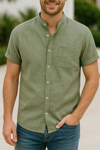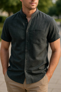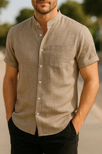 Dit shirt met korte mouwen is gemaakt van een hoogwaardige katoen-linnenmix en is ontworpen voor ademend vermogen, stijl en comfort bij warm weer. De moderne slim fit zorgt voor een stijlvol silhouet, terwijl de lichtgewicht stof je de hele dag koel houdt. Het shirt is ontworpen voor veelzijdigheid en past net zo goed op kantoor als tijdens een casual weekendje weg. De effen kleur maakt het gemakkelijk te combineren, terwijl de zachte textuur prettig aanvoelt op je huid. Draag het shirt los of in laagjes – hoe dan ook, je ziet er verzorgd uit zonder dat je daar veel moeite voor hoeft te doen. Combineer het met een getailleerde chino of slim fit jeans en loafers om de look af te maken.Heren Linnen Overhemd, Korte Mouwen, Effen Kleur, Slim Fit, Zakelijk Casual Zomertop | VIQA VIQA© NEDERLAND