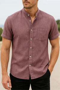 Heren Linnen Overhemd, Korte Mouwen, Effen Kleur, Slim Fit, Zakelijk Casual Zomertop | VIQA